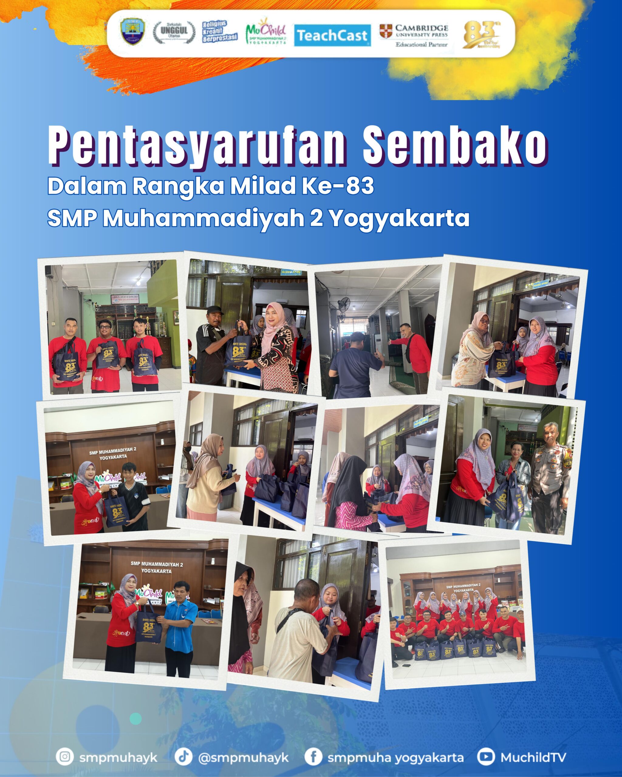 YOGYAKARTA – Dalam rangka memperingati Milad ke-83, SMP Muhammadiyah 2 Yogyakarta menyelenggarakan kegiatan Bakti Sosial dan Pentasyarufan sebagai bentuk kepedulian terhadap sesama serta wujud nyata pengamalan nilai-nilai kemuhammadiyahan.