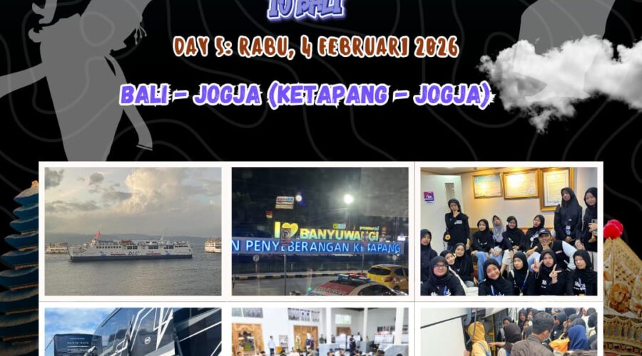 Alhamdulillah kegiatan wisata budaya Muchild sudah terlaksana dengan baik. Hari ke 5, Rabu 4 Februari 2026 Perjalanan meninggalkan Pulau Dewata menuju Jogja melaluiPelabuhan Penyeberangan Ketapang. Ketapang merupakan Pelabuhan yang terletak di Kecamatan Kalipuro, Banyuwangi yang menghubungkan Pulau Jawa dengan Pulau Bali via perhubungan laut (Selat Bali). Pelabuhan Ketapang berada dalam naungan dan pengelolaan dari ASDP Indonesia Ferry. Di perjalanan rombongan Muchild singgah di Masjid untuk melasanakan salat subuh berjamaah. Lalu...Baca selengkapnya