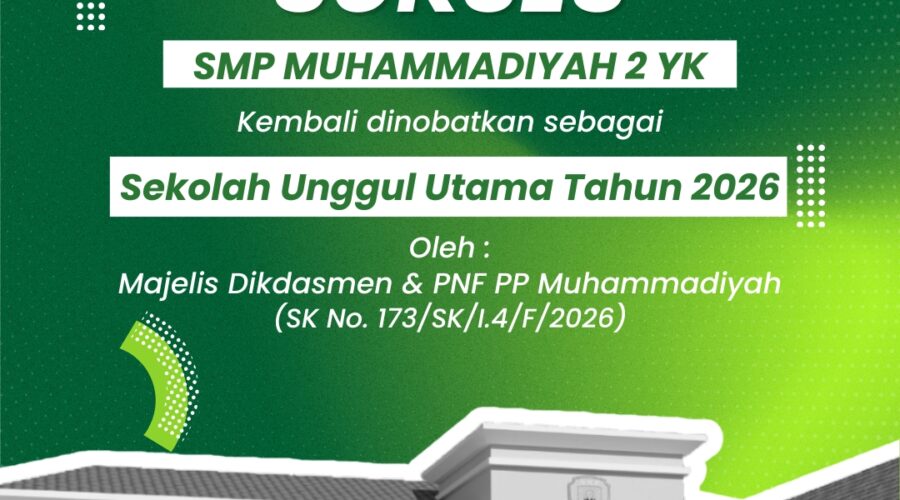 SMP Muhammadiyah 2 Yogyakarta -Setelah pernah menyandang kategori yang sama di tahun 2024 – 2025, SMP Muhammadiyah 2 Yogyakarta di tahun 2026 kembali ditetapkan sebagai Sekolah Unggul Utama oleh Majelis Dikdasmen & PNF PP Muhammadiyah yang tertuang dalam surat keputusan nomor 173/SK/I.4/F/2026. Kategori Unggul Utama merupakan kategori tertinggi (grade 1) menyusul kemudian ada Kategori Unggul Madya (Menengah) dan Grade 3 adalah Unggul Pratama. Pencapaian ini bukan tanpa usaha, karena untuk...Baca selengkapnya