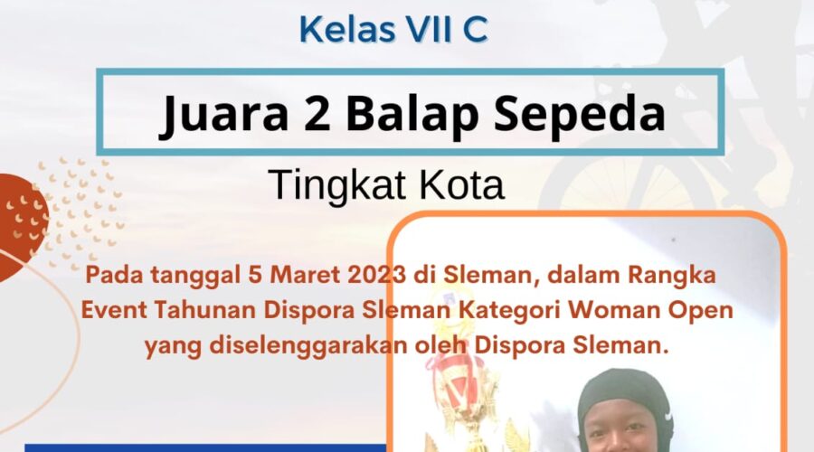 Kabar Prestasi Siswa SMP Muhammadiyah 2 Yogyakarta Alhamdulillah selamat & sukses atas prestasi Juara 2 Lomba Balap Sepeda Tingkat Kota yaitu Kinara Aleta Saputri Kelas VII C.Pada tanggal 5 Maret 2023 di Sleman, dalam Rangka Event Tahunan Dispora Sleman Kategori Woman Open yang diselenggarakan oleh Dispora Sleman...Semoga prestasinya meningkat dan terus menginspirasi Views: 10Baca selengkapnya
