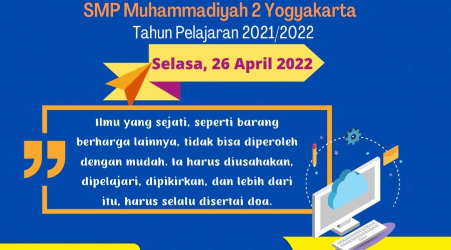Siswa SMP Muhammadiyah 2 YK selesai melaksanakan Ujian Sekolah dengan lancar. Ujian sekolah dilaksanakan tanggal 18-27 April 2022 secara online di Sekolah. Pelaksanaan USEK diikuti 260 siswa kelas 9. Untuk memperlancar kegiatan agar bisa berjalan satu waktu maka dibuat jadwal secara bergantian dengan cara separuh siswa mengerjakan di 5 labkom sekolah dan lainnya mengerjakan di kelas dengan laptop atau HP/ android. Ujian sekolah mengunakan aplikasi AUM yang dikoordinir oleh BKS...Baca selengkapnya