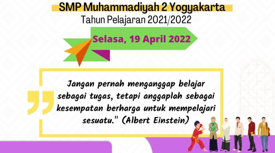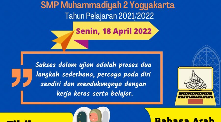 Senin, 17 April 2022 SMP Muhammadiyah 2 Yogyakarta melaksanakan Ujian Sekolah hari pertama dengan di awali oleh mata pelajaran Fikih dan Bahasa Arab, Ujian sekolah tahun ini sama seperti tahun sebelumnya menggunakan Aplikasi Ujian AUM. Mohon doanya semoga Ujian Sekolah yang akan dilaksanakan selama 8 hari mulai tanggal 18 – 27 April 2022 berjalan dengan lancar dan anak anak juga dimudahkan dalam mengerjakan soal ujian. Aamiin.. Dokumentasi Pelaksanaan Ujian Sekolah...Baca selengkapnya