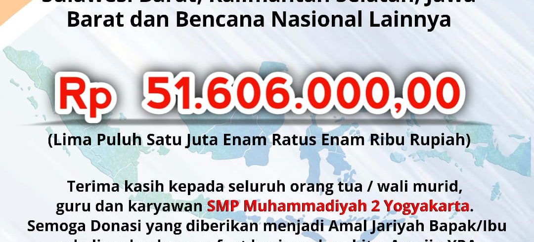 Berdasarkan Surat Edaran Penggalangan Dana dari Pimpinan Daerah Muhammadiyah Kota Yogyakarta No: 342/III.0/C/2021 tertanggal 15 November 2021, alhamdulillah SMP Muhammadiyah 2 Yogyakarta mengajak siswa, guru, dan karyawan SMP Muhammadiyah 2 Yogyakarta menginfaqkan sebagian rizqi yang Allah berikan untuk bencana Hidrometeorologi (Banjir bandang, angin puting beliung...Read More