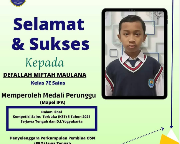 Alhamdulillah, selamat dan sukses Deffalah Miftah Maulana Kelas VII E Unggulan Sains, Mendapat Medali Perunggu di OSN Jawa TengahTerus mengukir prestasi dan karya kembangkan bakat dan potensi siswa SMP Muhammadiyah 2 Yogyakarta. SMP Muhammadiyah 2 Yogyakarta, sekolah para juara🏆 Views: 4Read More