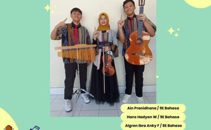 Selamat atas prestasi siswa juara 1 Ansamble Musik dalam FLS2N tingkat Provinsi yang diselengarakan oleh DIKPORA DIY : Ain Pranidhana kelas 9E Bahasa Hans Hadyan W. Kelas 9E Bahasa Algren Ibra AnkyF. kelas 8E Bahasa Views: 25