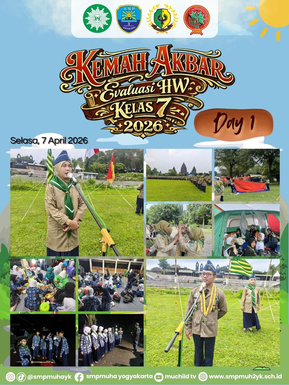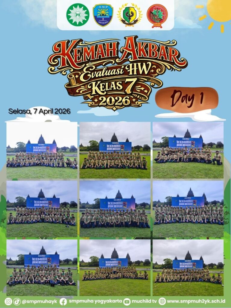 YOGYAKARTA – Kegiatan Kemah Akbar Evaluasi Hizbul Wathan (HW) kelas 7 tahun 2026 yang diselenggarakan oleh SMP Muhammadiyah 2 Yogyakarta resmi dimulai pada hari pertama (Muchild Day 1) dengan penuh semangat dan antusiasme peserta. Kegiatan ini berlangsung di kawasan alam terbuka yang berada di sekitar Candi Prambanan, memberikan nuansa edukatif sekaligus rekreatif bagi seluruh peserta (7/4/2026).