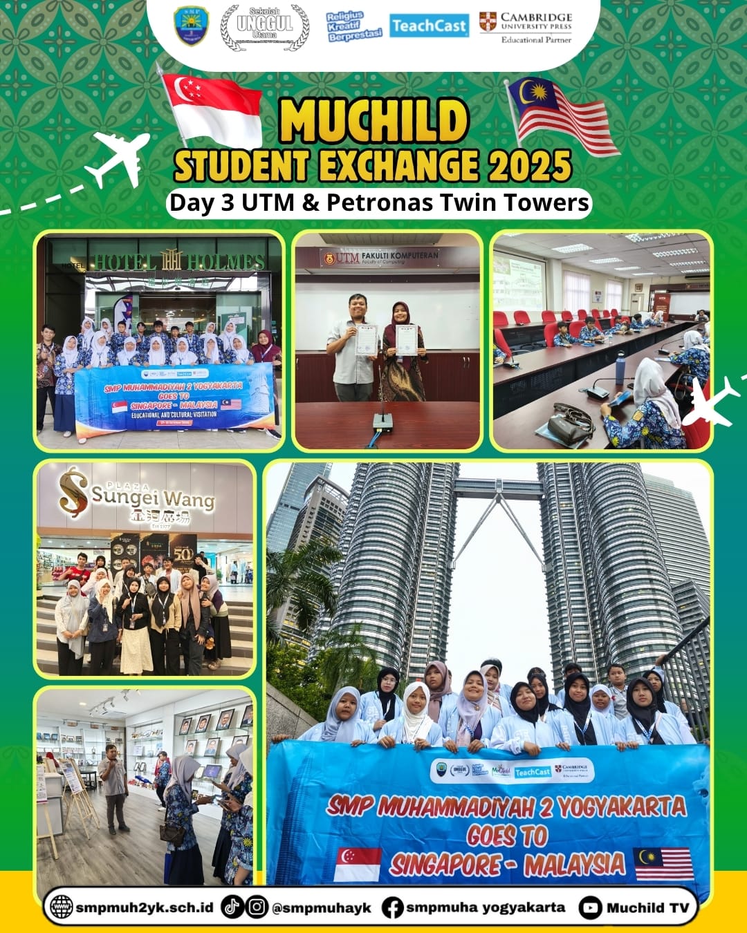 SMP MUHAMMADIYAH 2 YOGYAKARTA – From Campus to Capital Hari ketiga dibuka dengan kunjungan inspiratif ke Fakulti Komputeran Universiti Teknologi Malaysia (UTM), Johor Bahru. Para delegasi disambut hangat oleh Ts. Dr. Muhammad Iqbal Tariq Bin Idris – senior lecturer and external and global engagement beserta Persatuan Mahasiswa Sains Komputer (PERSAKA) dan diajak mengenal lebih dekat lingkungan kampus serta inovasi pendidikan di Malaysia melalui pemaparan University Profile nya bertempat di hyflex classroom WEDNESDAY,(29/10/25).