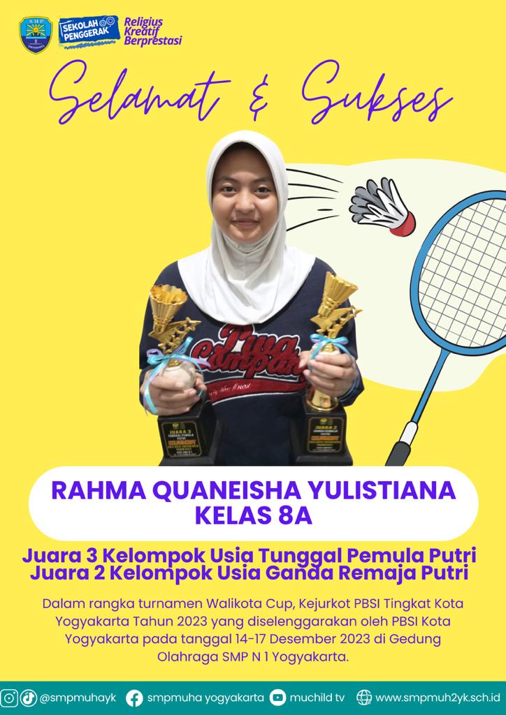 Rahma Quaneisha Yulistiana kelas 8A memperoleh dua medali
