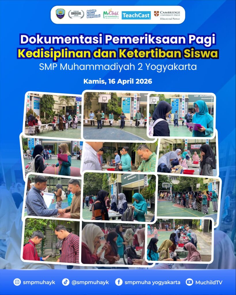 YOGYAKARTA , Kamis (16 April 2026) — SMP Muhammadiyah 2 Yogyakarta melaksanakan kegiatan razia kedisiplinan siswa sebagai bentuk komitmen dalam menegakkan tata tertib serta membentuk karakter siswa yang disiplin dan bertanggung jawab. Kegiatan ini dilaksanakan di lapangan sekolah pada pukul 06.15 hingga 07.20 WIB sebelum dimulainya proses pembelajaran.